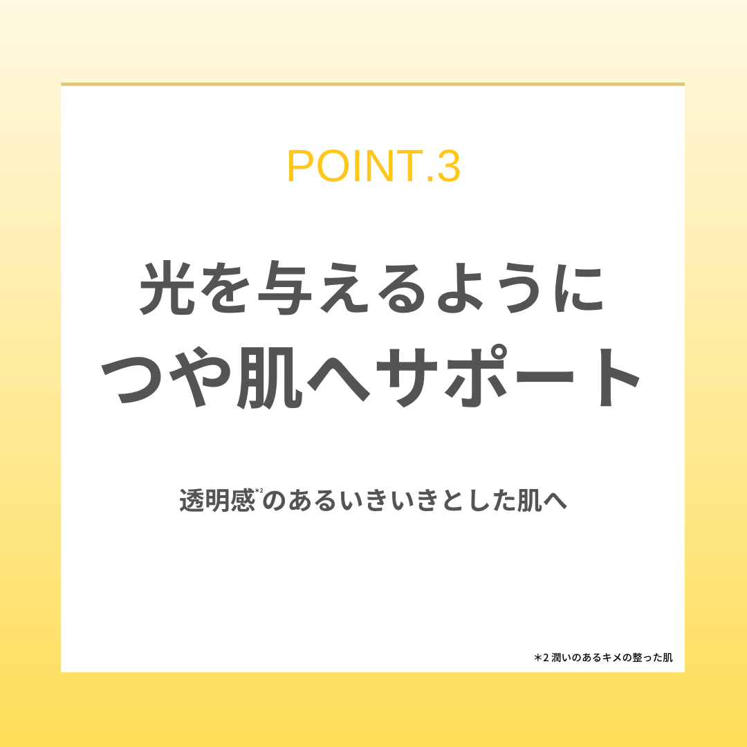オレンジの約100 倍含むビタミンC のテルミナリアフェルジナンジアナ果実エキス( 保湿成分) はより豊かな潤いをお肌に補給。